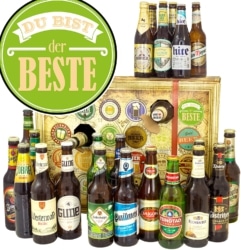 Hier bekommt ihr die Bier-Vielfalt! 15 deutsche Biere und 9 Biere aus aller Welt, zum Beispiel aus China, Korea, Indien und Dänemark. Das ebenfalls enthaltene Bierbuch führt euch perfekt durch das Tasting.